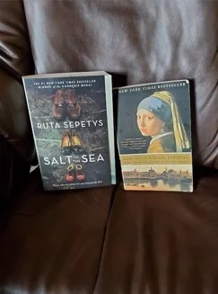 Girl With A Pearl Earring by Tracy Chevalier, Plume Book, 2001. The author imagines the domestic life of artist Johannes Vermeer, Dutch portrait painter in the town of Delft in the mid-1600s. Chevalier centers her story around the maid who may have posed for the painting of the Girl with A Pearl Earring. Vermeer and his wife, Catharina had 15 children. The 11 who lived offer room for imagination. This book so inspired me that I researched the life of Vermeer and found photos of many of his paintings. The book was also made into a movie.